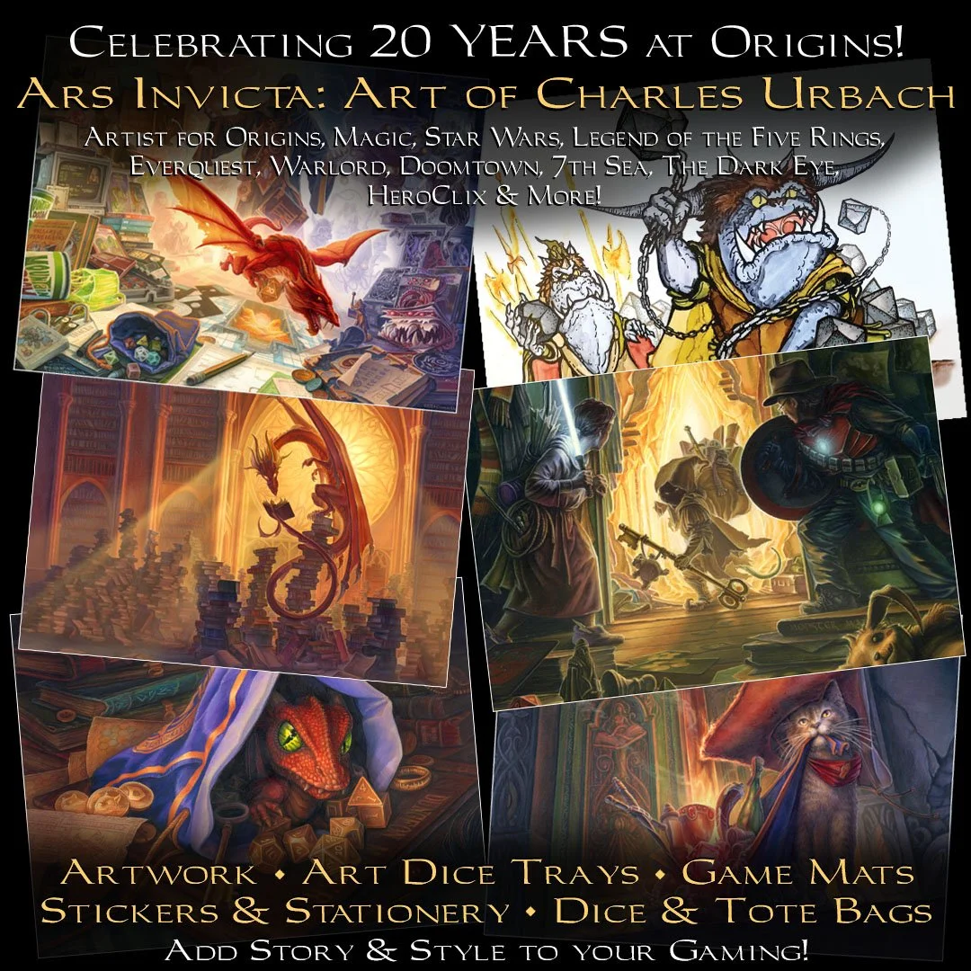 Color pencil illustrator, Charles Urbach returns with artwork and exclusive gaming accessories featuring his one of a kind work. In 2006, Charles arrived in the Origins Art Show with his independent art and illustrations for Warlord: Saga of the Storm and Legend of the Five Rings. In the 2 decades since, his work has grown to include many major gaming and entertainment franchises, covers for best-selling science fiction & fantasy authors, and 9 covers for Origins Game Fair itself - 2 program books and 7 authors' anthologies. Charles was the first illustrator to depict the mascot Crit for Origins and taught classes as part of programming for many years. It's an honor to be back in the Artist Alley to celebrate 20 years of creativity, fellowship, and great gaming with the convention community that was there at the start of his tabletop gaming adventure.
