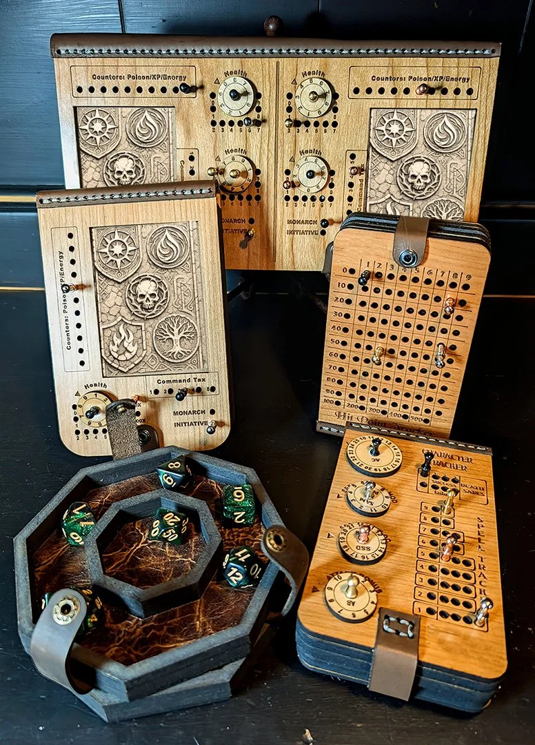 Each piece begins as an original design and is brought to life through engraved wood and leather using modern laser technology combined with traditional hand assembly. I create durable, heirloom-quality items such as refillable journals, RPG player trackers, travel games, and engraved leather wall scrolls.