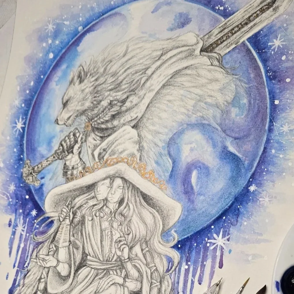 Maliveth is a coffee-fueled, Midwest-based fantasy artist with a love of cozy colors and tense scenes. She is inspired by art nouveau, storytelling, swords & magic.
