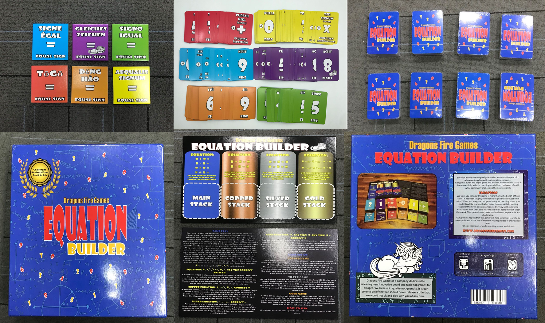 Equation Builder is a three-tiered, mathematics, deck building game that teaches the basics of math from kindergarten to eighth grade.