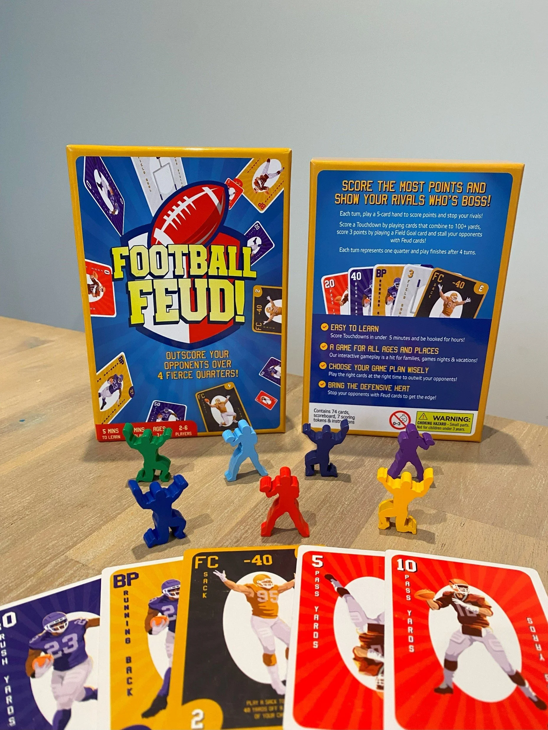 SCORE THE MOST POINTS AND SHOW YOUR RIVALS WHO’S BOSS! Aim to outscore your opponents over 4 quarters with each turn representing 1 quarter. Score points via TDs, Field Goals and the occasional Safety to surge ahead or launch an epic comeback! Each turn is gripping and unpredictable, bringing the thrill of football to your games table. Our game develops counting skills, basic multiplication and the Australian version of our game is endorsed by State Math bodies.