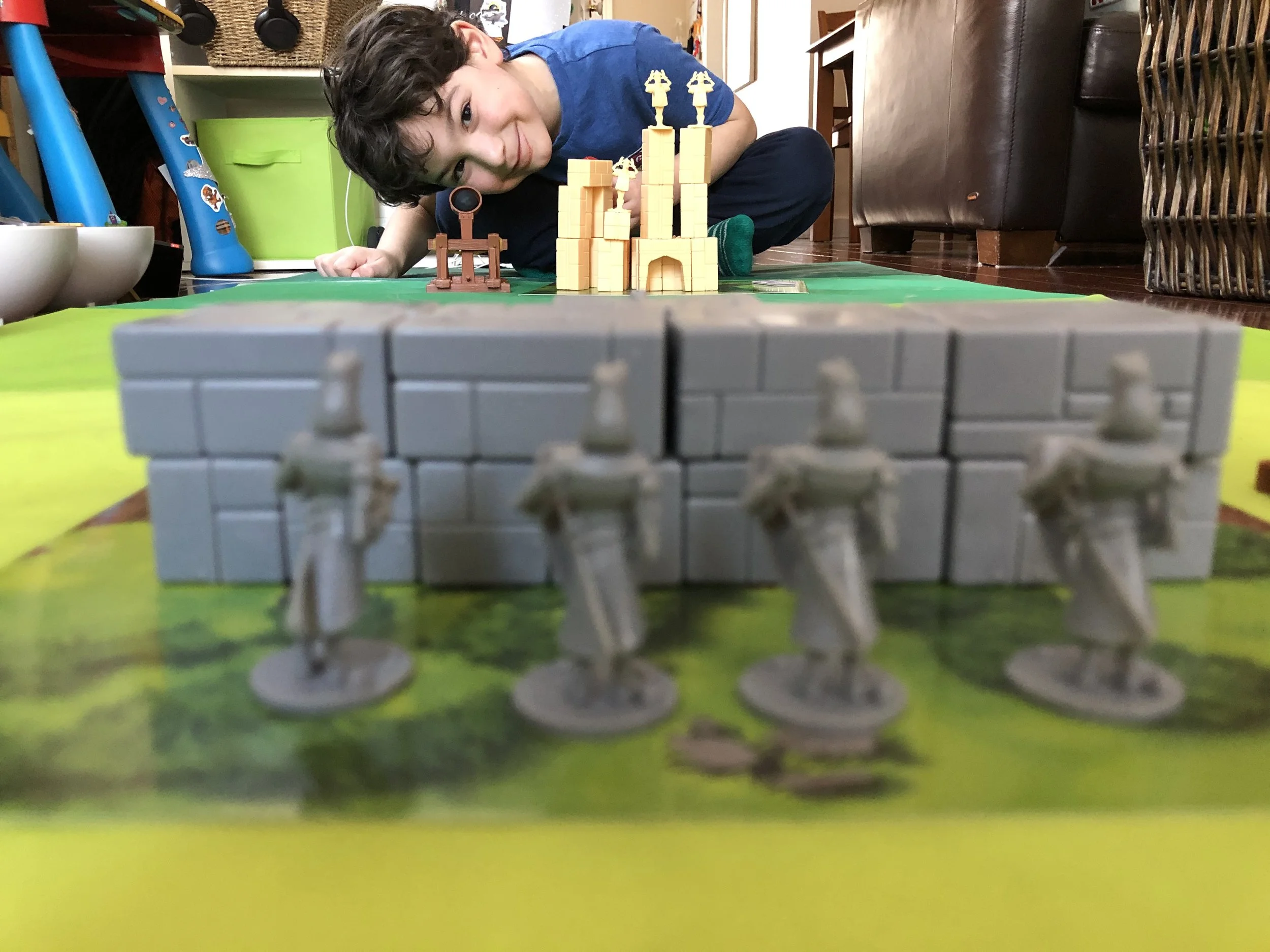 Build castles out of plastic bricks, place troops, launch rubber boulders from catapults trying to knock the troops down. It is currently being used in classrooms to learn about structural stability, angles, and trajectories.